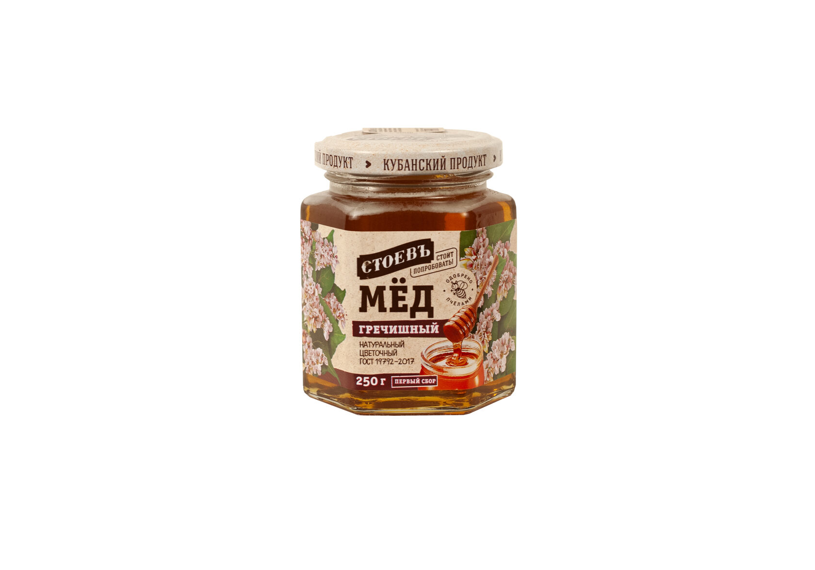 Мёд натуральный цветочный с гречихой ТМ “Ципиновы” 250 грамм ст/б
