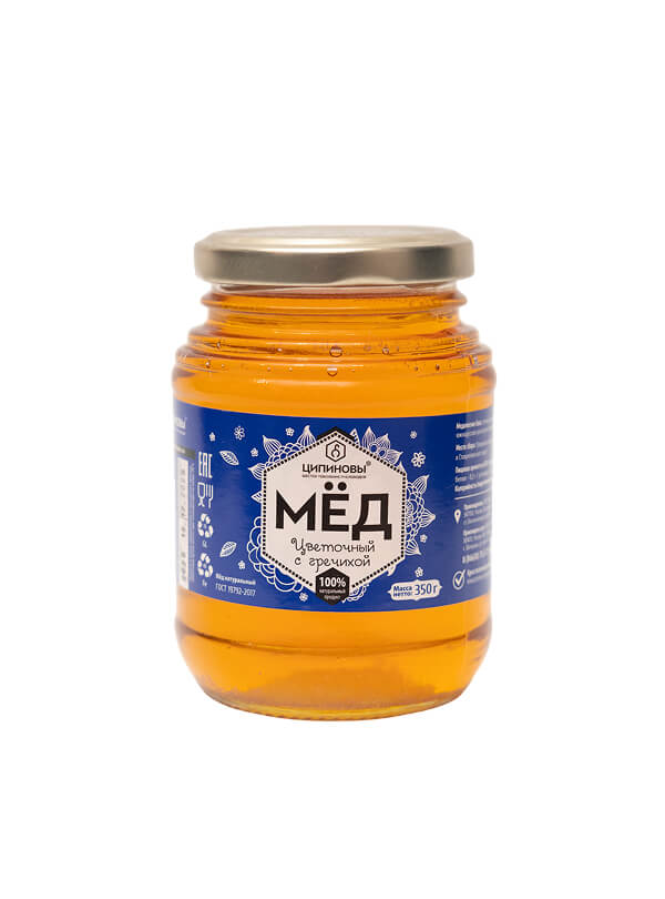 Мёд натуральный цветочный с гречихой ТМ “Ципиновы” 350 грамм ст/б