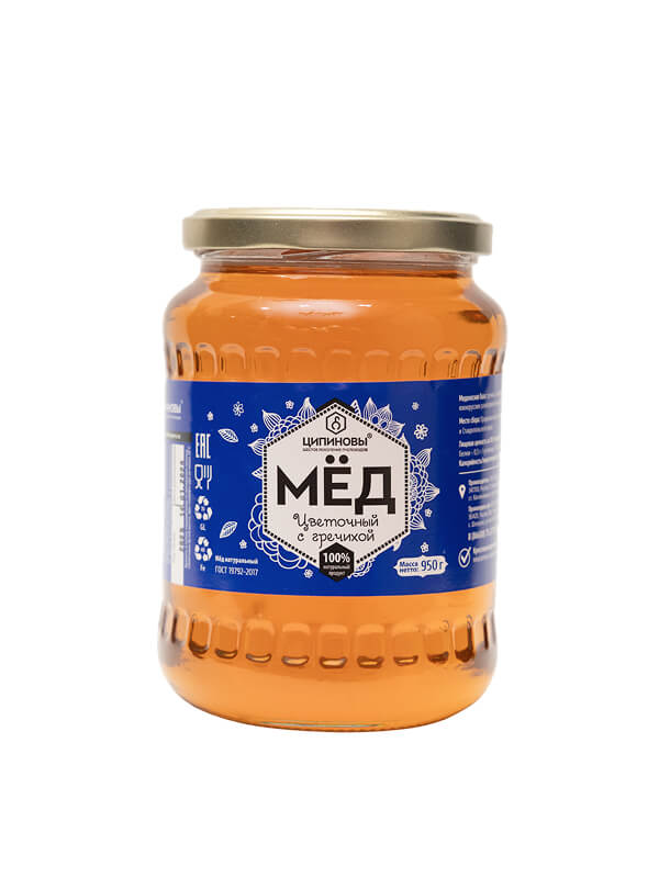 Мёд натуральный цветочный с гречихой ТМ “Ципиновы” 950 грамм ст/б